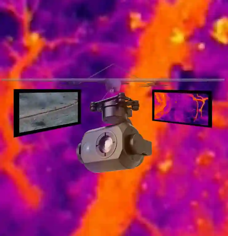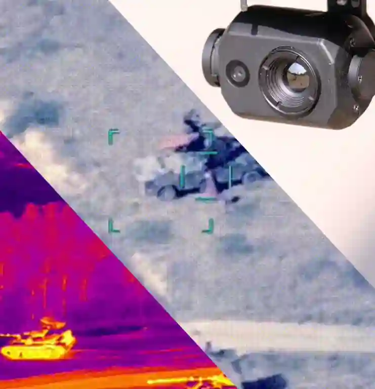 A miniature three axis dual light gyroscope stabilized pod, integrated with a long wave uncooled infrared camera.